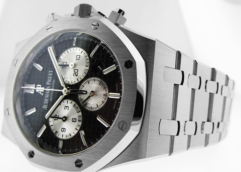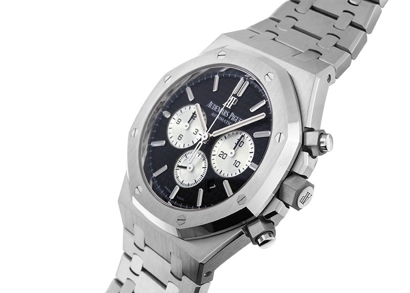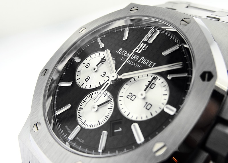 視認性の向上によりスケールアップした「ロイヤルオーク クロノグラフ」は市場でもプレミアプライスで取り引きされる人気モデルです。