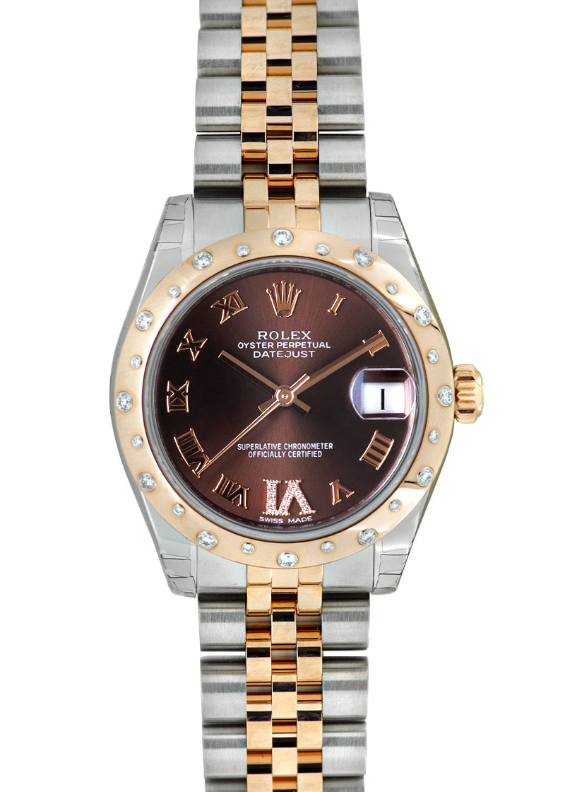 ロレックス - レディース オイスター パーペチュアル デイトジャスト ダイヤモンドベゼル | ROLEX | 178341 | PG&SS ブラウン文字盤 自動巻き ブレスレット |