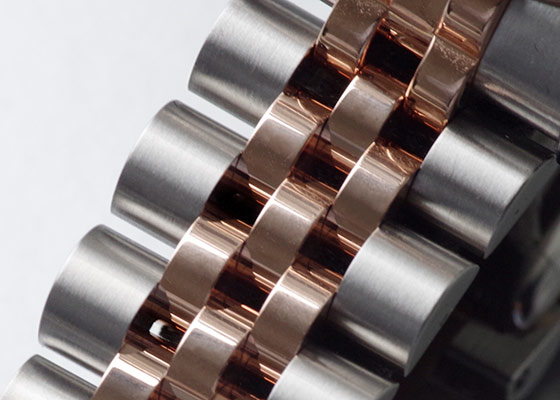 ピンクゴールドよりも退色しにくいと言われる、ロレックス独自配合によるエバーローズゴールドはプラチナを配合することで赤みが抑えられており