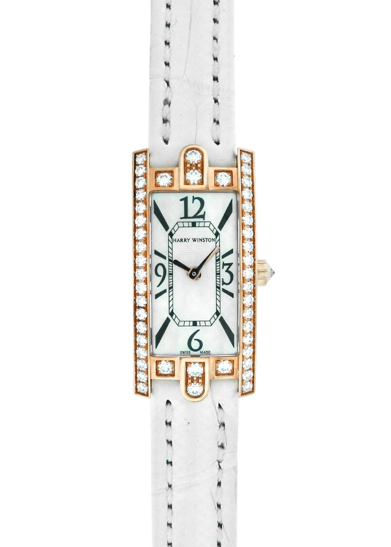ハリー・ウィンストンを代表するレクタンギュラー・ウォッチのコレクションです。 細部に至るまで美しく丁寧に仕上げられたケースは、最高級のクオリティのダイヤモンドがもつ輝きを最大限引き出すためにデザインされました。 また、ケー スの上下にあしらわれたアーチ形のラグは、ニューヨーク5番街にあるハリー・ウィンストン本店の玄関ドアのモチーフをベースにしています。 まさにキング・オブ・ダイヤモンドの名に恥じない上質な仕上がりの腕時計であるといえるでしょう。 定番レディースウォッチのアヴェニューCを一回り小さくし、細めのリストにエレガントにマッチするミニバージョンの新作モデル。 上下、サイドにダイヤモンド ベゼル。ホワイトのマザーオブパール・ダイヤルと、ブラックのアラビック・インデックスが美しいコントラストになっています。 商品状態は、外装仕上げ済み、ストラップは使用感はあるもののこのままご使用いただけます。 付属品は国際保証書・携帯ケースが付帯いたします。 さらに詳しい内容を確認されたい方はお気軽にお問い合せ下さい。