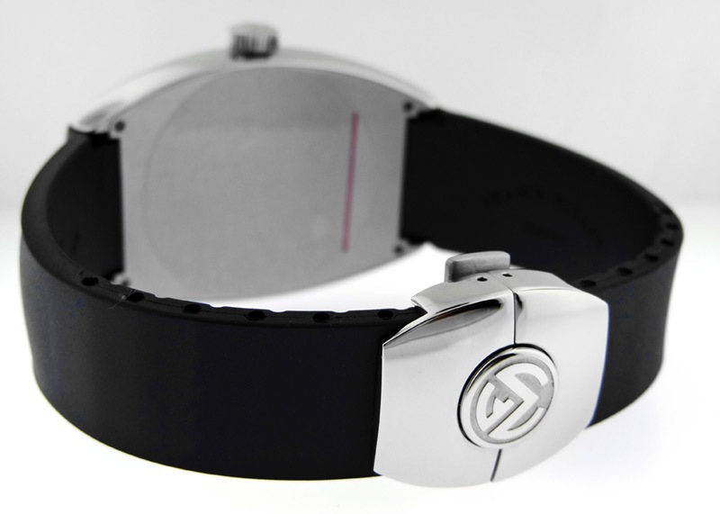 付属しているストラップは1年を通してお使いいただきやすいラバータイプ。バックルはDバックル式なので、着脱が容易で落下の危険性もなく実用性に長けています。
