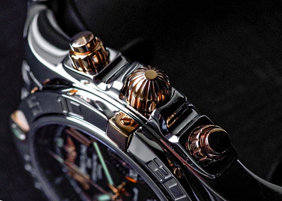 ムーヴメントのキャリバー01は70時間のパワーリザーブや操作禁止時間帯の無いクイックチェンジデイト機能、精度に影響の少ない垂直クラッチ式のクロノグラフとどれをとってもハイスペックな仕上がりです。
