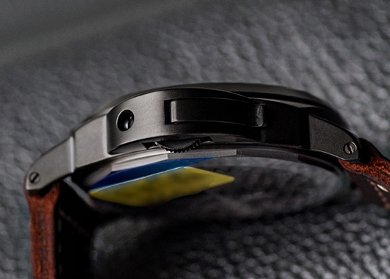 傷に強く腐食がおこらないモース硬度の高いDLCコーティングを施したチタンケースに納められた手巻きムーブメント Cal P.5000は香箱が2つ入っており安定した駆動と8日間ものロングパワーリザーブを備えています。
