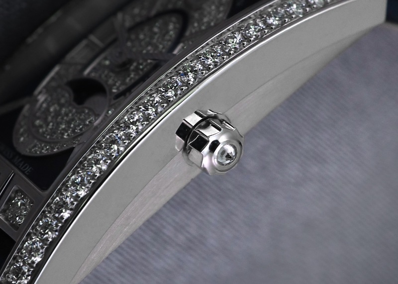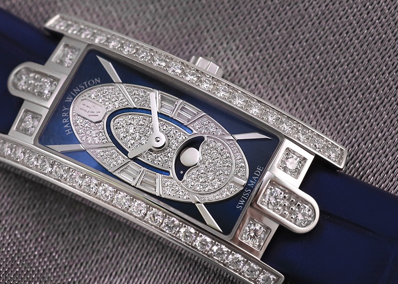 ハリーウィンストンのレディース アヴェニューC ミニ・ムーンフェイズが入荷しました。 1999年に誕生したアヴェニューシリーズは、最初のハリーウィンストンサロンが登場した1930年代のニューヨーク5番街から着想を得ています。 アールデコ時代の装飾を想起させる優美なケースラインとレクタンギュラーのフォルムが特徴です。 ブルーに配色したマザーオブパールと文字盤中央に採用された楕円形の“エリプティック"が美しい2019年新作モデルです。 6時位置にはムーンフェイスが配置されています。 厳格な基準で選ばれたダイヤモンドが文字盤、ケース、リューズにあしらわれており華やかな印象を与えます。一方で、文字盤とベルトのブルーが落ち着いた印象も感じさせ、大人の女性の腕元を飾るのにふさわしい時計です。 さらに詳しい内容を確認されたい方はお気軽にお問い合せ下さい。
