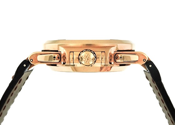 ベゼルとリューズガードが一体となったことで120Mの防水性能を実現した個性的なケースは、ジェラルド・ジェンタ氏のデザインによるもので、1976年の誕生以来変わらぬ姿です。 ケースサイズは服の袖口に収まりの良く、主張し過ぎない40.5mm。そこに収まるのは自社ムーブメントである、キャリバーCH28-520C。文字盤18時位置に12時間計一体型クロノグラフ・サブダイヤル、3時位置にカレンダーをそれぞれ搭載しています。 また、カレンダーの操作は通常のリューズではなく、7時側のプッシュボタンにて操作します。