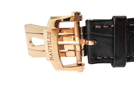「5980R-001」は存在感のあるフォルムで高い人気を誇るノーチラスのローズゴールド製クロノグラフモデルです。