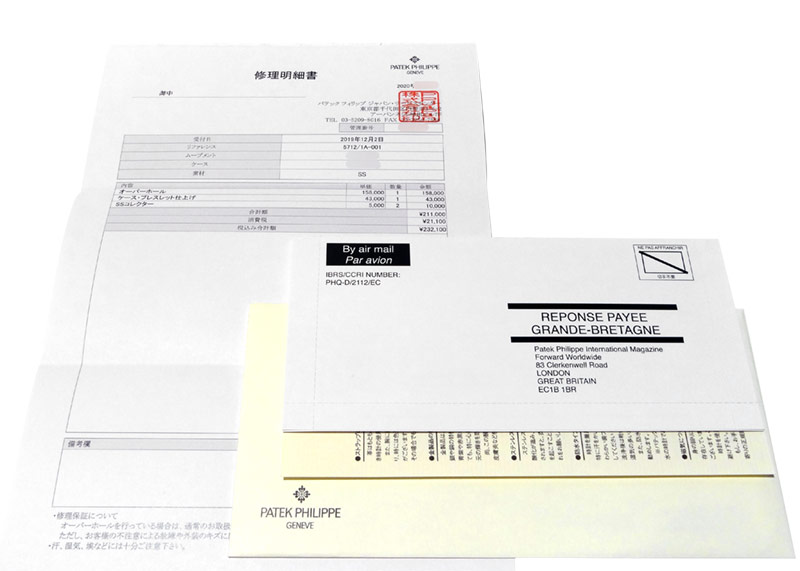 付属品は箱、国際保証書、修理明細がございます。