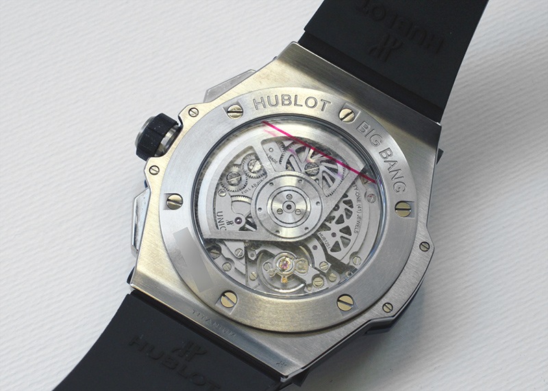 搭載ムーブメントは、ウブロ自慢の自社製コラムホイール・クロノグラフムーブメント「ウニコ」です。