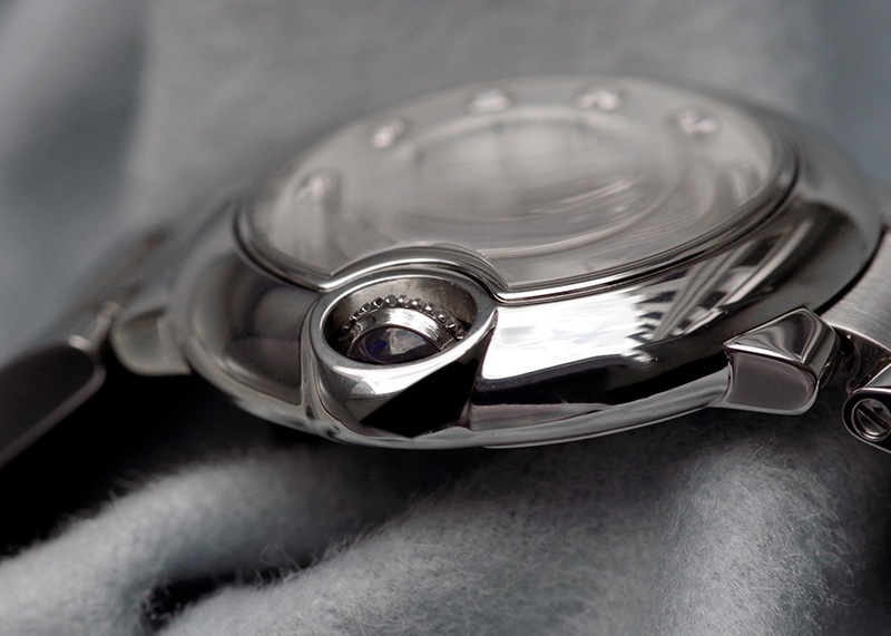 ギョーシェが施されたシルバー文字盤、ブルースティールのバトン、深いブルーのリューズ。カルティエの世界観を思う存分に感じていただける時計に仕上がっています。