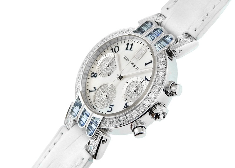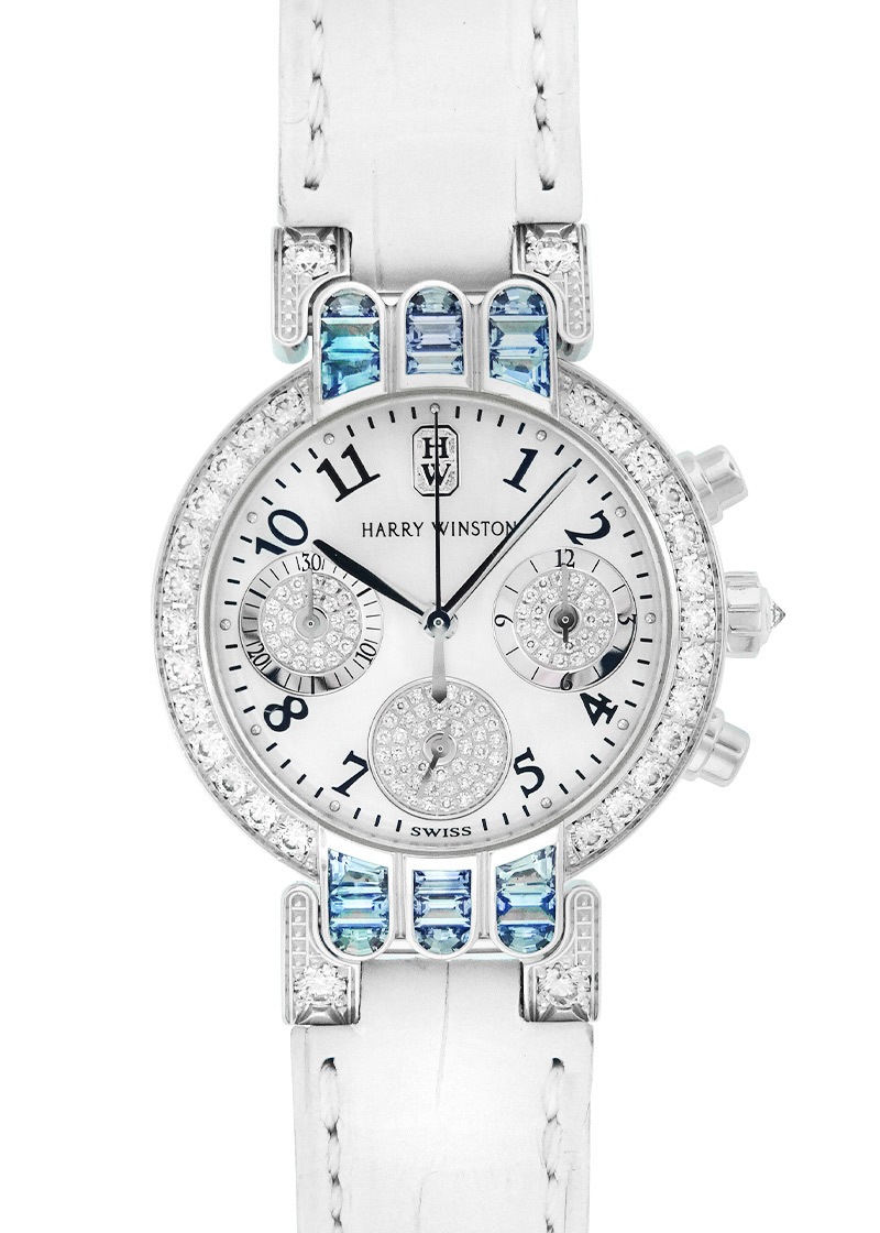 ハリーウィンストン - レディース プルミエールクロノグラフ ベゼルダイヤ | HARRY WINSTON | 200/UCQ32W (PREQCH32WW072) | WG シェル/ダイヤ文字盤 クォーツ レザー | 委託品 | 中古 |