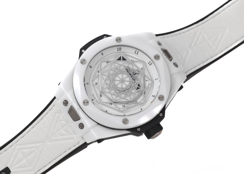 その独創的なデザインはスペイン語で「ユニーク」を意味する「ウニコ」コレクションに相応しいモデル。ダイアルからベゼル、ストラップに至るまで幾何学模様が彫り込まれたその芸術的デザインは、調和の取れた華やかさを持っています。