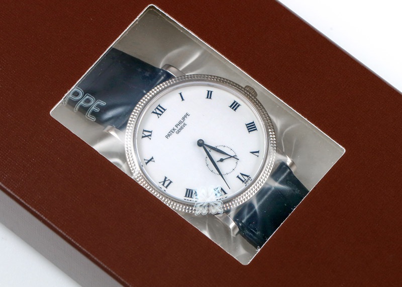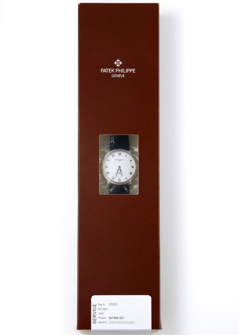 パテック フィリップの象徴ともいえるブランドマークのカラトラバ十字からそのまま名前を付けられた同ブランドの代名詞であるモデル、カラトラバ。 洗練された美しさで魅了するホワイトゴールドで作られた3919G-001。 ケースサイズは男性にも女性にもおすすめの33mm。 高貴なホワイトの文字盤をベースに、ローマ数字のインデックスとクルー・ド・パリ装飾のベゼルの組み合わせから放たれる美しさと貫禄を持った時計です。パテックフィリップの広告にも多く登場したモデルで、今ではとてもレアなモデルとなった3919。 ぜひ店頭で実物をご覧ください。 こちらの商品は、パテックフィリップでのオーバーホール、研磨作業を含むコンプリートサービスが完了しています。 レザーベルトも新品の純正ベルトに付け替えております。 サービス完了後、時計はパテックフィリップにて封をされ、真空パックの状態となります。新しいオーナー様が手にするまでは、他人は直接時計本体には触ることができません。 新しく生まれ変わった時計となってお客様のお手元に届きます。 お客様ご自身で未開封の真空パックを開封していただき、 これからお客様と共に始まる、新しいカラトラバの世界を是非ご堪能ください。 付属品はパテックフィリップの国際保証書と箱が付きます。 さらに詳しい内容を確認されたい方はお気軽にお問い合せ下さい ※生産終了モデル