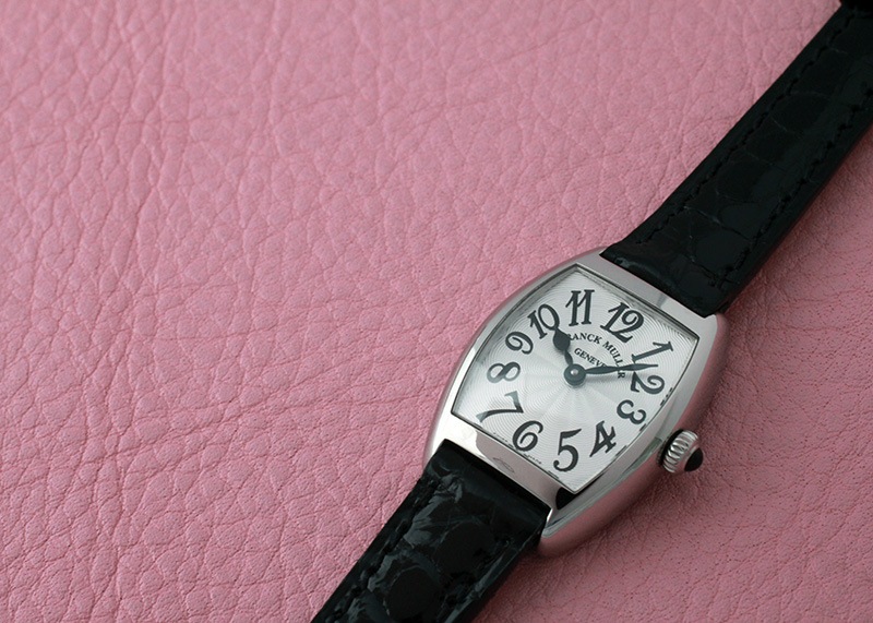 他ブランドのトノー型の時計とは一線を画す、アールデコをモチーフとした美しい形状が特徴のフランクミュラーを代表する人気モデルです。