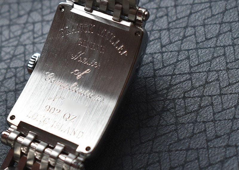 フランクミュラーならではの美しく伸びやかなインデックス、クラシカルな針、光の陰影を見せギョーシェ彫りが施されたブルー文字盤が華やかで芸術的なスタイルを持っています。
