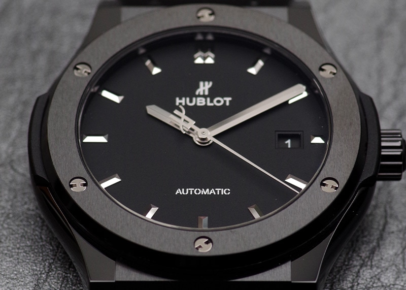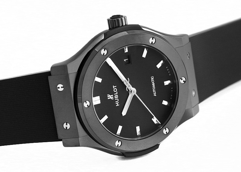 ウブロ - クラシックフュージョン ブラックシャイニー | HUBLOT | 542.NX.1270.LR | TI 黒文字盤 自動巻き ラバー | 中古