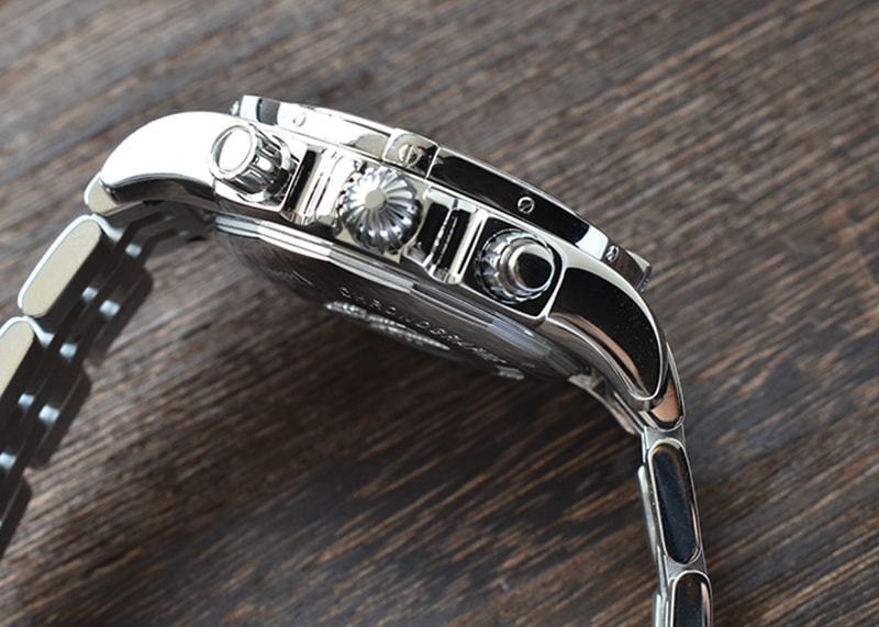 ムーヴメントのキャリバー01は70時間のパワーリザーブや操作禁止時間帯の無いクイックチェンジデイト機能、精度に影響の少ない垂直クラッチ式のクロノグラフとどれをとってもハイスペックな仕上がりです。