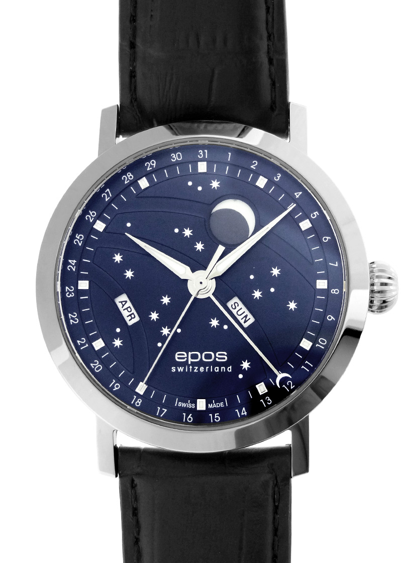 エポス - ナイトスカイ ビッグムーン | EPOS | 3440BL | SS ブルー文字盤 自動巻き レザー |