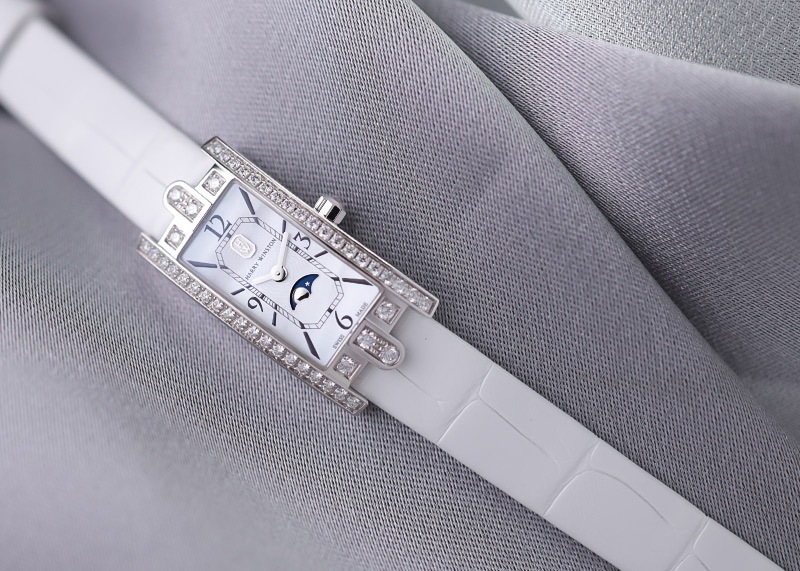 ケースには宝石のエキスパート・ハリーウィンストンが誇る最高級のラウンドブリリアントカットダイヤモンドを惜しみなく使用。 非常に贅沢で気品に満ちた愛され続けるタイムピースです。 非常に贅沢で気品に満ちた愛され続けるタイムピースです。