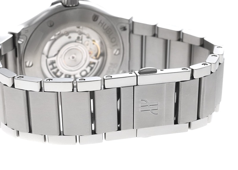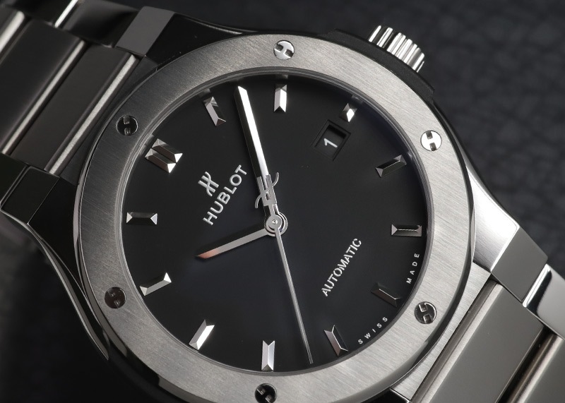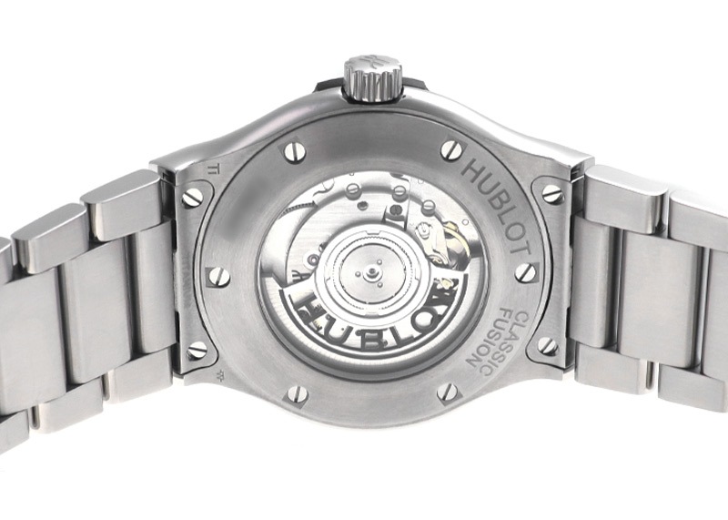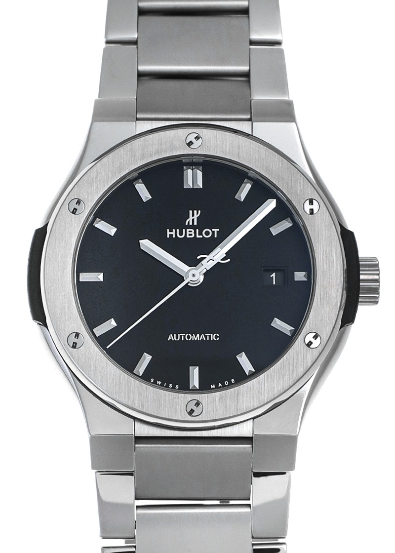ウブロの初期のデザインと現在のモダンなデザインが融合した「クラシック フュージョン」。 アーティスト、企業などとのコラボレーションモデルや、様々なバリエーションが展開されている人気コレクションです。 クラシックフュージョンは初期のウブロを模した全体的に丸みを帯びたデザインとなっており、腕元に落ち着いた印象を与えてくれます。 シンプルな三針モデルでカジュアルな装いや、スマートな装いなどシーンを選ばず活躍する一本です。 こちらは、すっきりとして使い勝手の良い42mmケースサイズです。 パワーリザーブ42時間 総重量約80gの軽量なポリッシュ&サテン仕上げチタニウムケース製。チタニウム製ブレスレットモデル。