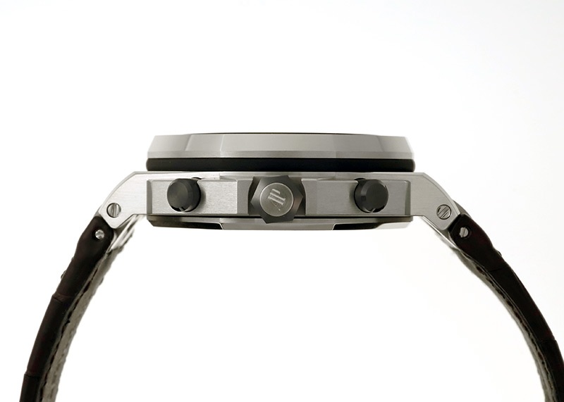 伝説的な8角形の文字盤周りには8本のネジが見え、ベゼル、ケース、ケースバック、すべてを貫通して固定しています。世代を超えて支持される、文字どおりの「名品」です。