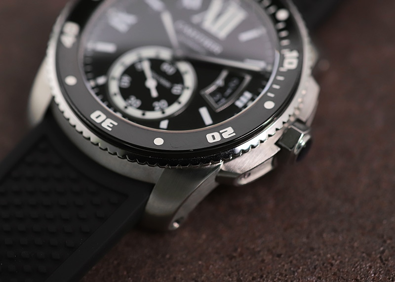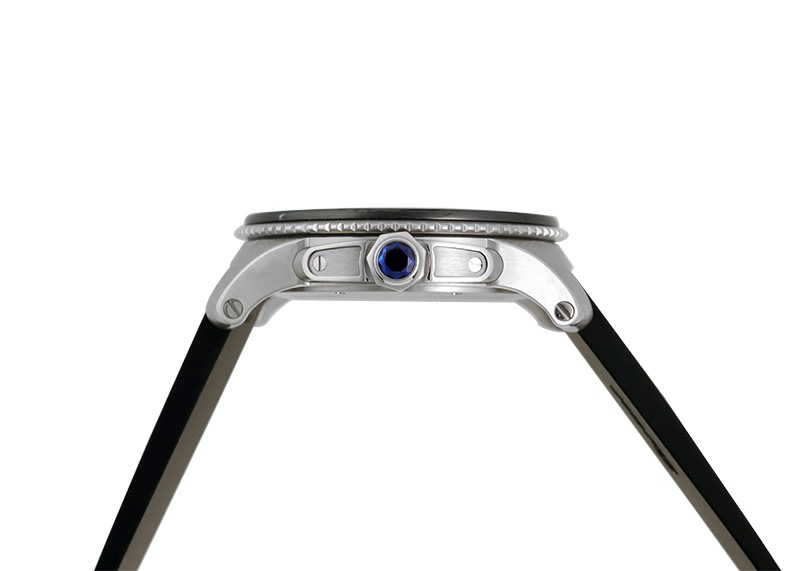 300m防水の本格的な仕様で、ベゼルにも強度の高いADLC(非結晶ダイヤモンドカーボン)コーティングが施されています。