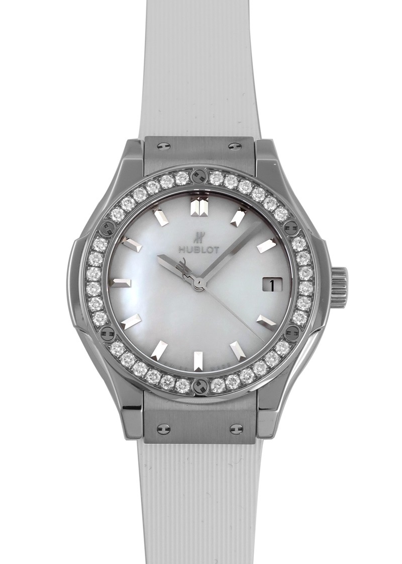 ウブロ - クラシックフュージョン パールホワイト ダイヤモンド | HUBLOT | 581.NE.6070.LR.1204.JPN16 | TI シェル文字盤 自動巻き ラバー | 日本限定 | 中古 |