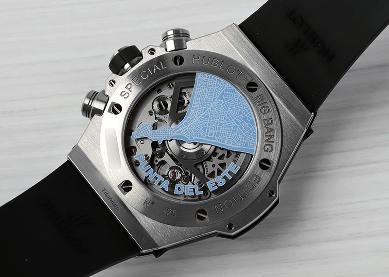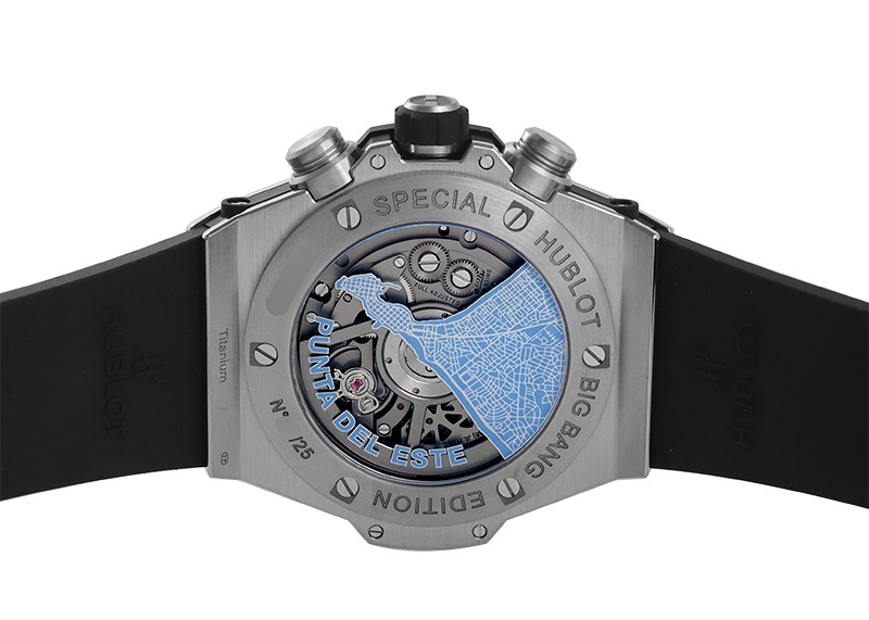 ケースバックには、リミテッドNoが刻印されています。また、プンタ・デル・エステの地図がデザインされており、大人の遊び心をくすぐります。