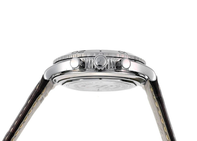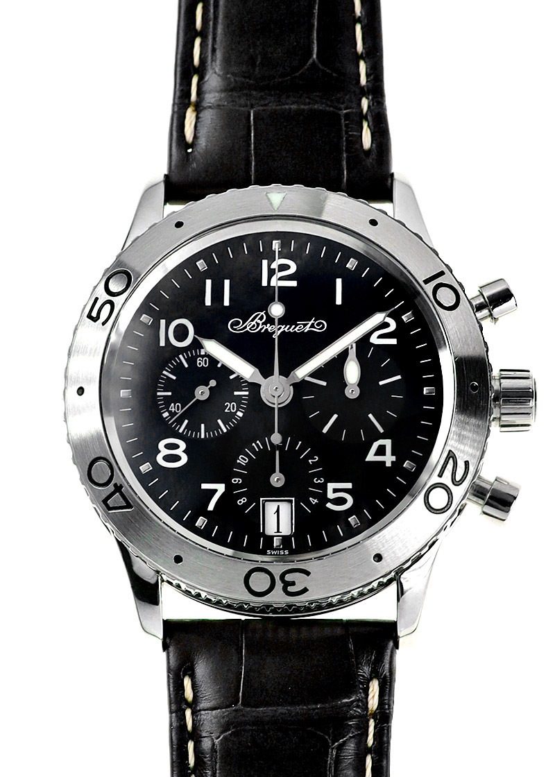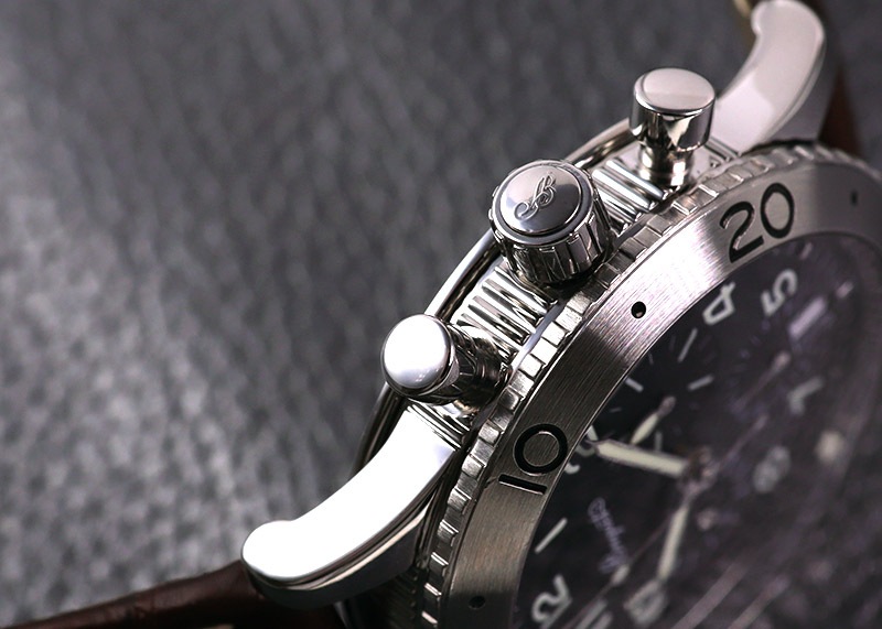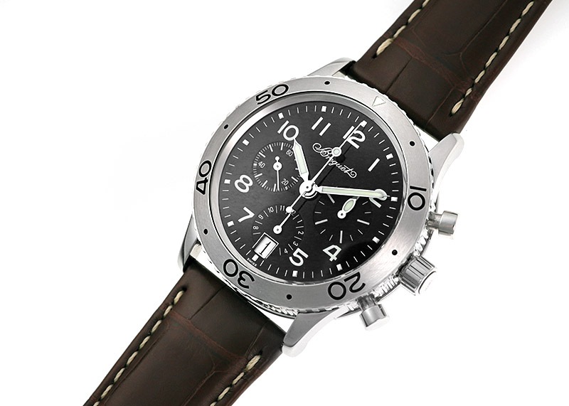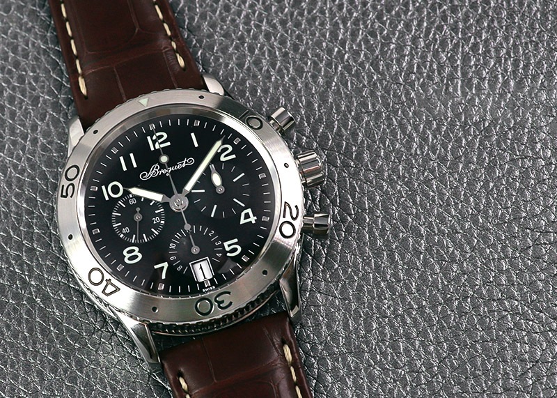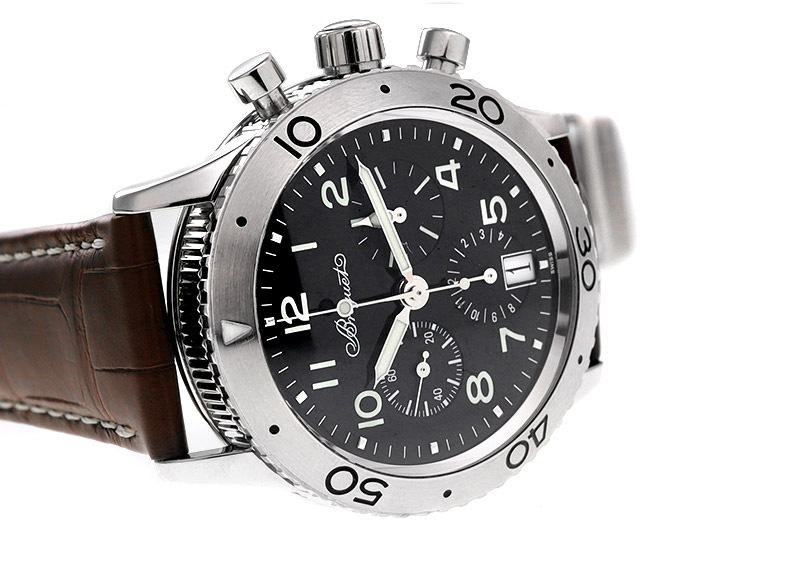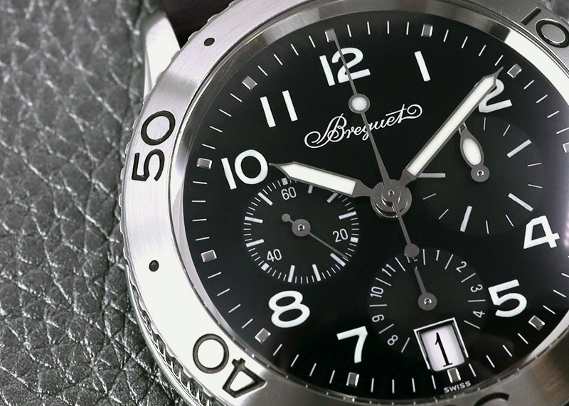 ミドルケースにはブレゲと分かるコインエッジのデザインが盛り込まれたパイロットウォッチで、風防はドーム型です。