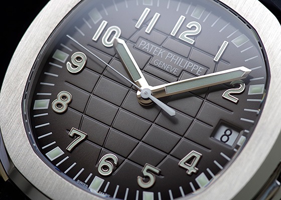 ノーチラスをカジュアルにしたアクアノートは八角形のベゼルのカーブが緩やかで、インデックスはアラビア数字を採用しています。