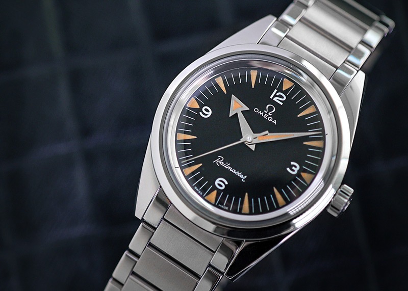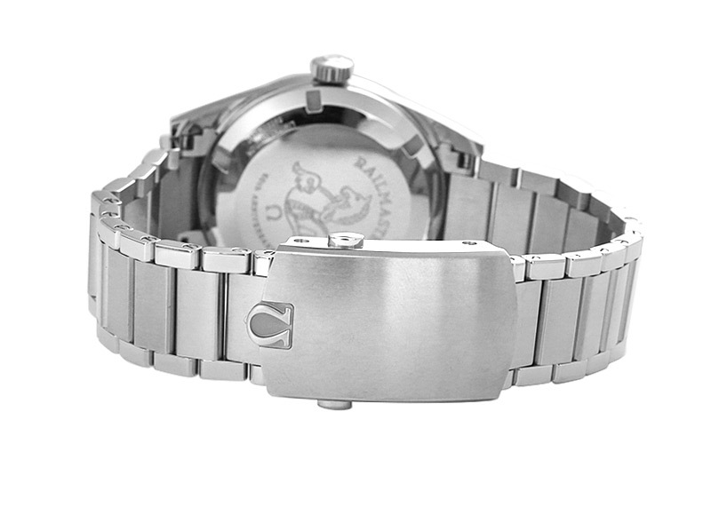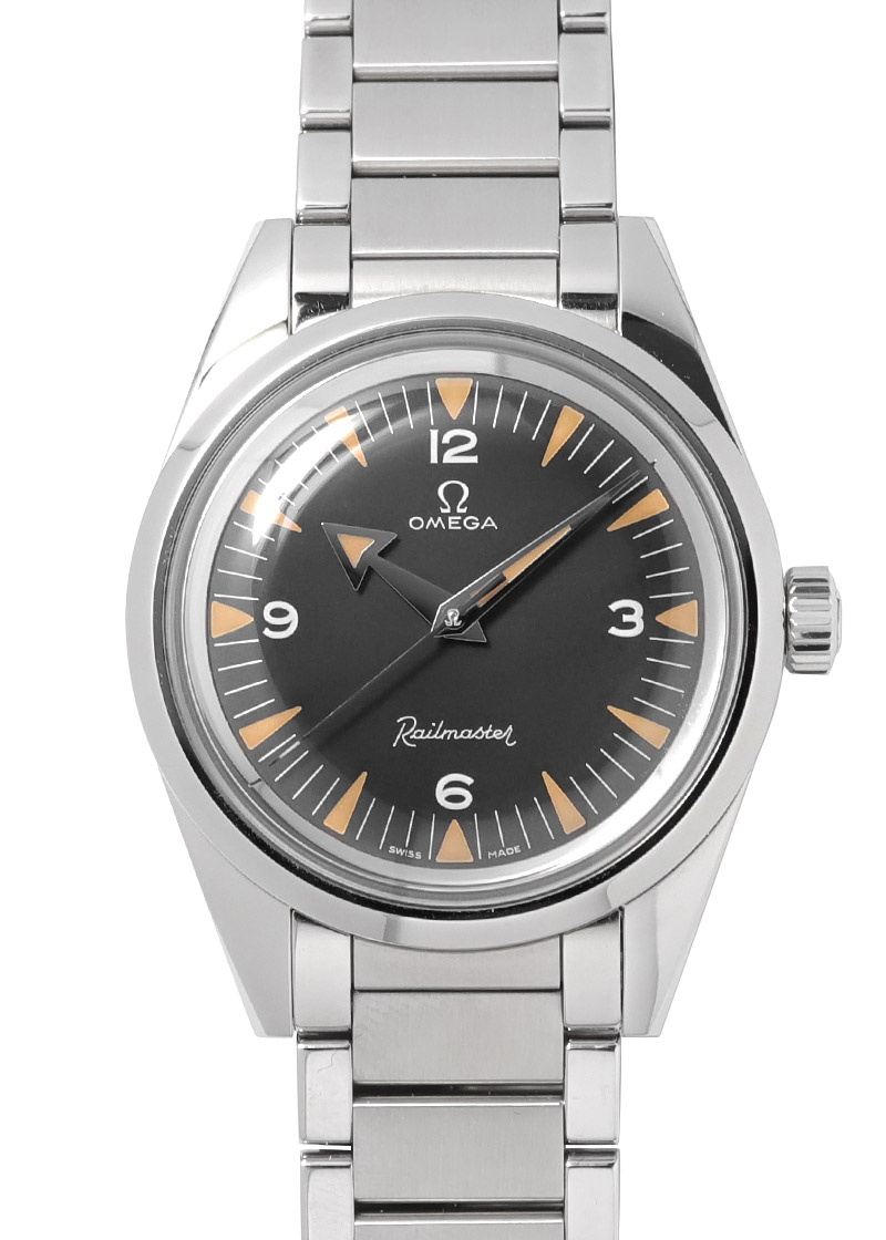 【中古】オメガ 220.10.38.20.01.002 レイルマスター1957 トリロジー SS 黒文字盤 自動巻き ブレスレット【世界3557本限定】