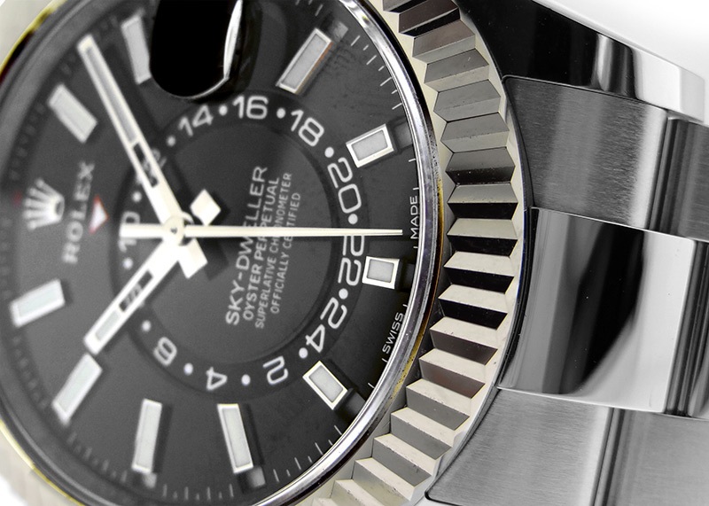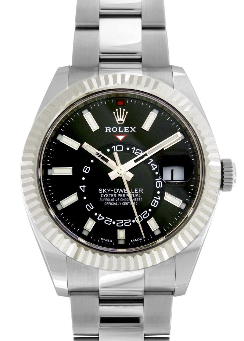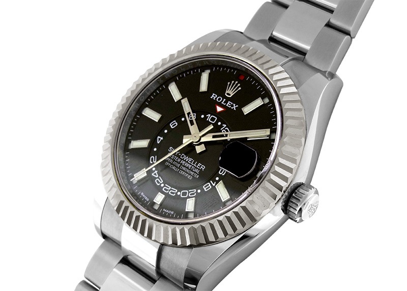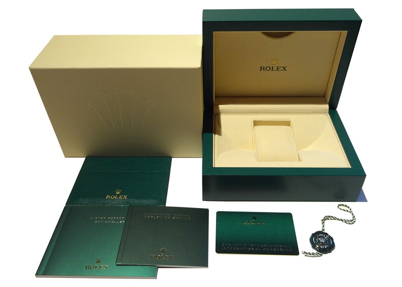 ロレックス「スカイドゥエラー」が入荷いたしました。 スカイドゥエラーが初めて発表されたのは2012年。 当時は無垢素材のみのハイモデルでしたが、実用性を兼ね備えたステンレススチールモデルが2017年より追加されています。 ロレックス初となるセミ・コンプリケーションモデルで、年次カレンダーと第2タイムゾーン機能を搭載。 回転ベゼルとリューズで簡単に「年次カレンダー・ローカルタイム・ホームタイム・月日・時刻調整」操作が可能。 ムーブメントは完全自社製のcal.9001でパワーリザーブは約72時間。 コンプリケーションモデルながら、ケースには「リングコマンドシステム」を搭載したことにより、強みとしている防水性を維持。 またアニュアルカレンダーには「サロシステム」を採用しデリケートな機構でありながらも、ロレックスのスポーツモデルに共通するタフな仕様となっています。 視認性にもこだわり、すっきりと洗練されたデザインと最先端技術を持つ魅力的なモデルです。 付属品は箱・保証書(2020年9月)がございます。 数回使用のミントコンディションで、当店入荷後にライトポリッシュを行っており、大変綺麗な状態です。 さらに詳しい内容を確認されたい方は、お気軽にお問い合せ下さい。 ※参考定価1,857,900円