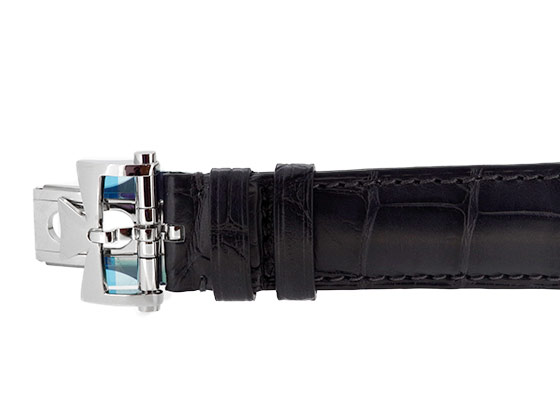 ラウンドケースに、ブランドのシンボルマークでもあるマルタ十字を模ったラグが特徴。
