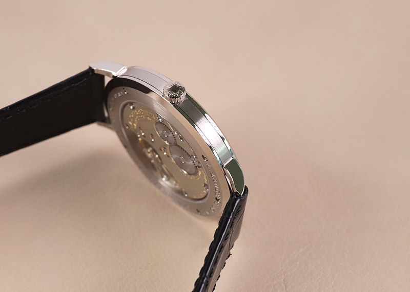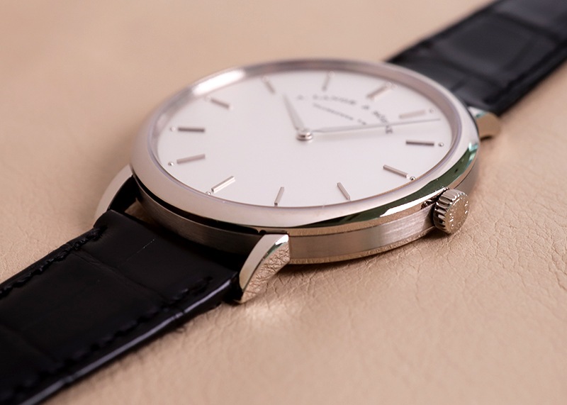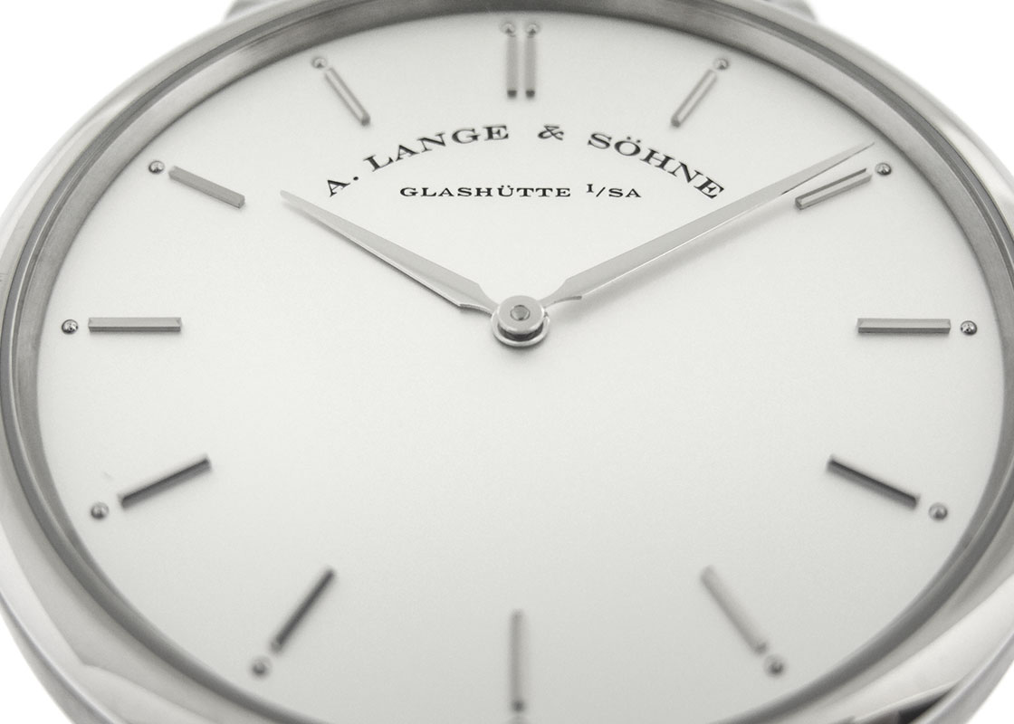 名門マニュファクチュール、A.ランゲ&ゾーネから「サクソニア フラッハ」のご紹介です。 モデル名のサクソニアとは、ドイツのザクセン州に由来しています。 かつてこの地に繁栄したザクセン王国にて、A.ランゲ&ゾーネの長い歴史が始まりました。 2011年に発表されたフラッハシリーズは、一切の無駄を省きかつ審美性を追求。 文字盤には時針と分針の表示だけで、機械式時計の基本的な機能のみに特化し、二針時計の優雅さを強調します。 全ての部品の厚さを抑えてフラッハ専用に設計されたムーブメントL093.1の厚みは僅か2.9mm、それを収めるミドルケースの厚みは5.9mmとA.ランゲ&ゾーネ最薄のモデルです。 薄さを追求しながらも機能面や美しさに対する妥協は一切ありません。 パワーリザーブは72時間あり実用性の面でも安心。 ドイツ・グラスヒュッテで発展した妥協のない職人の手仕上げをケースバックからお楽しみいただけます。 商品状態は2021年2月にランゲ&ゾーネにてコンプリートサービス・リファビッシュ(金盛りを含めた外装仕上げ)・ストラップ交換を実施。 付属品は箱・簡易ケース・ランゲ&ゾーネ修理明細書がございます。 さらに詳しい内容を確認されたい方はお気軽にお問い合せ下さい。 参考定価:2,640,000円(税込)