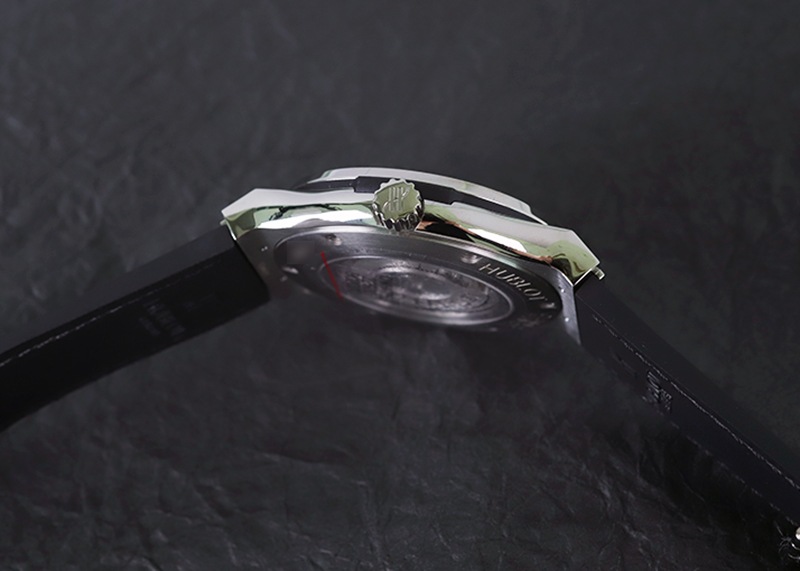 ビッグバンとは対象的に、初期のウブロを模した全体的に丸みを帯びたデザインとなっており、腕元に落ち着いた印象を与えてくれます。