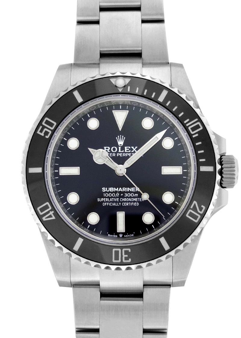 ロレックス「オイスターパーペチュアル サブマリーナ」 1953年世界初のダイバーズウォッチとして誕生したのがロレックス 「サブマリーナ」。 それから幾重にも改良され、ロレックスの中ではサブマリーナが1番多くのリファレンスを持っています。 こちらは2020年9月に発表された現行の「サブマリーナ」。 シリーズの中でも、日付がないシンプルなノンデイトモデルは ガラスに日付の拡大レンズがなくシンプルで端正な印象です。 以前のモデルよりもブレスレットの幅とケースサイズが1㎜大きくなっていますが、ラグの先端を1mm細くする事によりシャープな印象に仕上がっているのが特徴です。 ムーブメントは「114060」に搭載された「Cal.3130」から90%の部品に新設計と改良が加えられた「cal.3230」を採用。 衝撃からの復元性と耐磁性に優れており、温度変化にも強いブルーパラクロム・ヘアスプリング、軽量化と歯形の見直しにより効率を改善したクロナジーエスケープメントが搭載されています。 パワーリザーブが約70時間に延びた点も見逃せないポイントです。 商品状態は2020年12月に販売された品で日が経っていないこともあり、とても綺麗な状態です。 付属品は箱と保証書が付属しております。 さらに詳しい内容を確認されたい方は、お気軽にお問い合せ下さい。