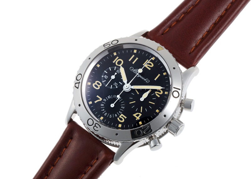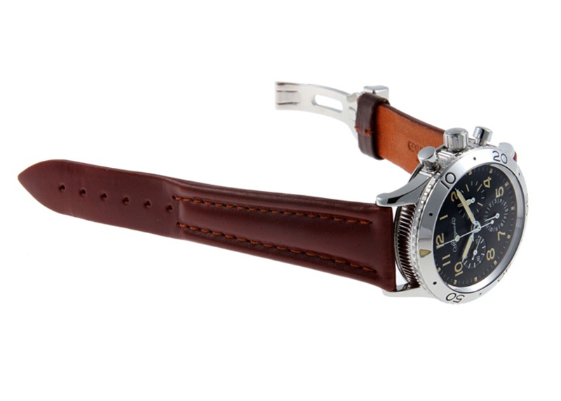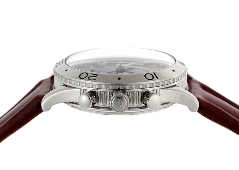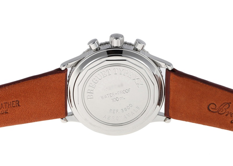 生産終了となった今でも人気タイプXX アエロナバルです。 1950年代にフランス空軍に納入され、1995年に一般消費者向けに復刻したのがこの「アエロナバル」。 フライバック機能、コインエッジなどブレゲならではの特徴を備えた名作クロノグラフです。 デイト機能やハック機能はありませんが、そのクラシカルさもこのモデルの人気のひとつです。 ケースサイズは39mmと程よい大きさで、流行にとらわれず末永く使っていただける時計です。 文字盤のロゴはBreguetのtの横棒が無い初期タイプ、夜光はトリチウムです。 逆回転防止のベゼルが付き、裏蓋は100m防水の刻印がございます。リューズはSS仕様です。 当店にて分解掃除(オーバーホール)と外観の傷取り(研磨)をおこない、ベルトは純正新品のカーフベルトに交換済みです。 ベゼルや裏蓋などに小傷が残っていますが、流通量が減ってきているなかこの状態を保っている個体は少ないと感じます。 付属品は無く、当店のオリジナル携帯ケースをお付けします。 さらに詳しい内容を確認されたい方は、お気軽にお問い合わせください。