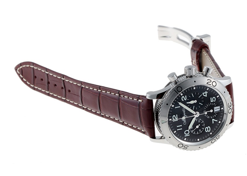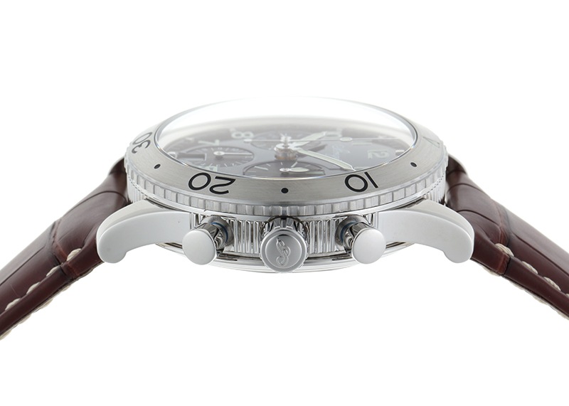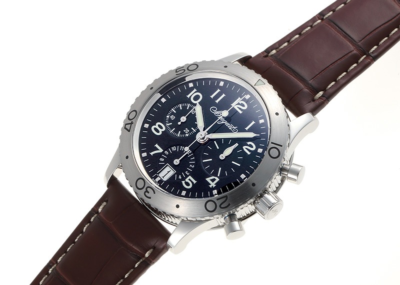 ミドルケースにはブレゲと分かるコインエッジのデザインが盛り込まれたパイロットウォッチで、風防はドーム型です。