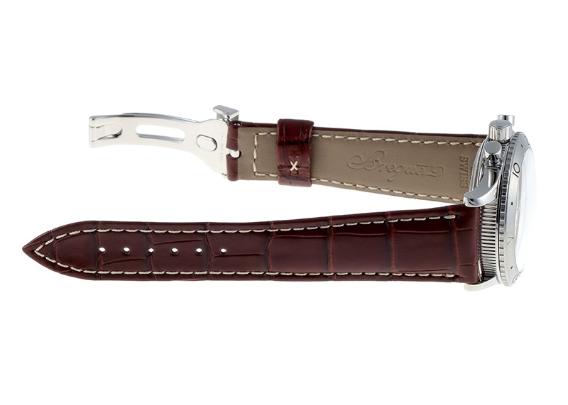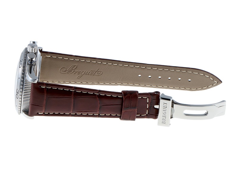 分解掃除(オーバーホール)と外観の傷取り(研磨)をおこなっており、ストラップはブレゲ純正のアリゲーターベルトに交換済みです。