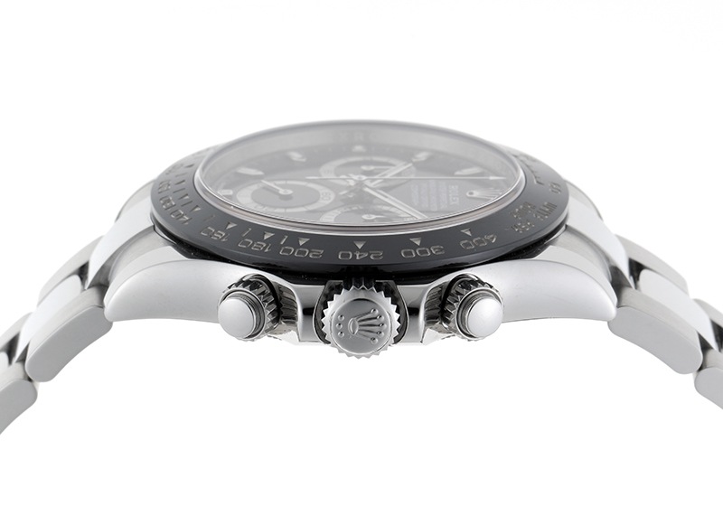 前モデルの116520からの変更点は、ステンレススティール製のベゼルがセラクロム(セラミック)に変わり、ベゼルのメモリもデザイン変更となりました。