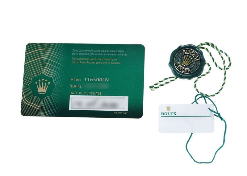 ロレックスの保証書(2020年6月)、タグが付属します。別途、当店のオリジナル携帯ケースをお付けします。