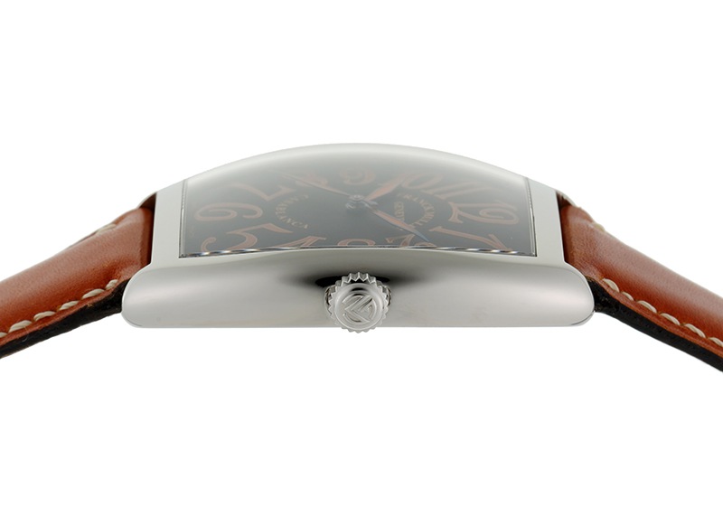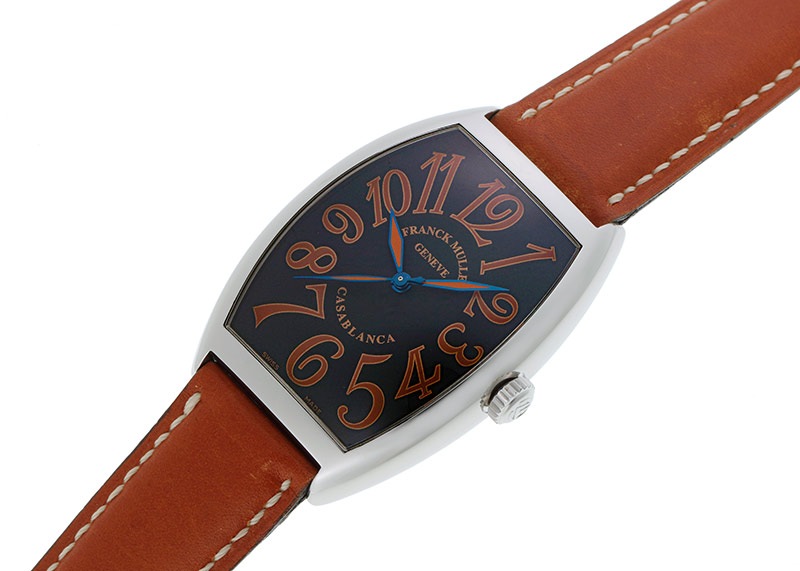 フランクミュラーの定番人気モデル「カサブランカ サハラ」の中古品が入荷いたしました。 「カサブランカ」は、モロッコの都市カサブランカの1940年代の姿をイメージして作られた、 フランクミュラー初のステンレススティール製のコレクションです。 定番のカサブランカにオレンジのインデックスを配したモデルで、ブラックとの組み合わせは、赤く焼けた大地ををより強く連想させます。 また、文字盤は持ち主と同じ様に歳を重ねエイジングする文字盤を採用。時を刻み、時と共に味わいを感じさせます。 こちらの「6850」はケースサイズが47mm×34mmのメンズモデルで、カサブランカのサイズ展開の中ではちょうど中間の大きさ。扱いやすいサイズです。 もっと大きいサイズがお好みであれば8880を、小振りなサイズであれば5850をおすすめします。 自動巻きのムーブメントは分解掃除(オーバーホール)が完了しています。 外装の傷取り(研磨)を行っています。裏蓋には取り切れない小傷がみられます。 ストラップは未使用品の純正カーフが付属します。使用はしていませんが表面に僅かな擦れが見られます。 付属品はなく、当店のオリジナル携帯ケースをお付けします。 さらに詳しい内容を確認されたい方はお気軽にお問い合せ下さい。