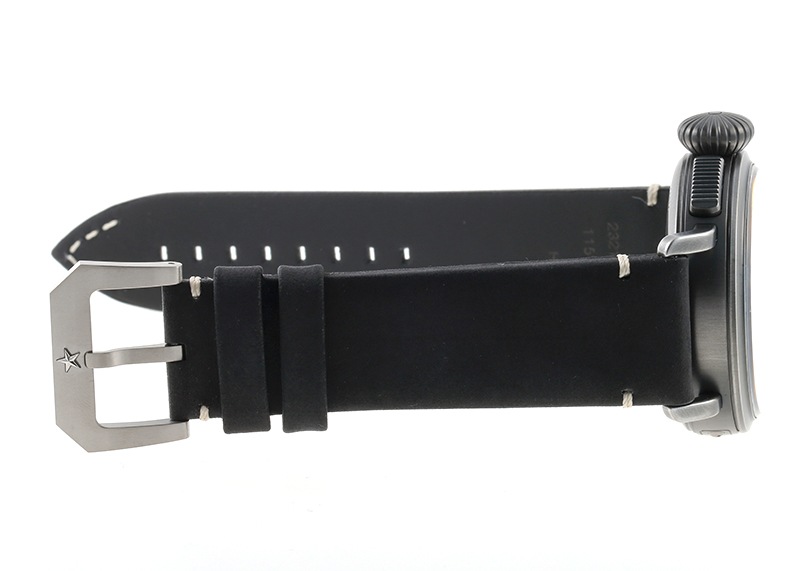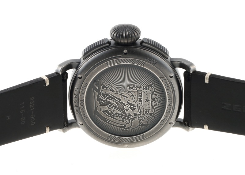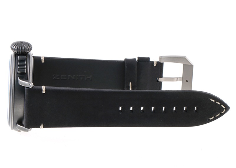 マットブラック文字盤にブラックケース、エイジング加工されたヌバックレザーストラップが存在感を出し、心臓部には自動巻きムーブメント(エル・プリメロ 4069)を搭載。