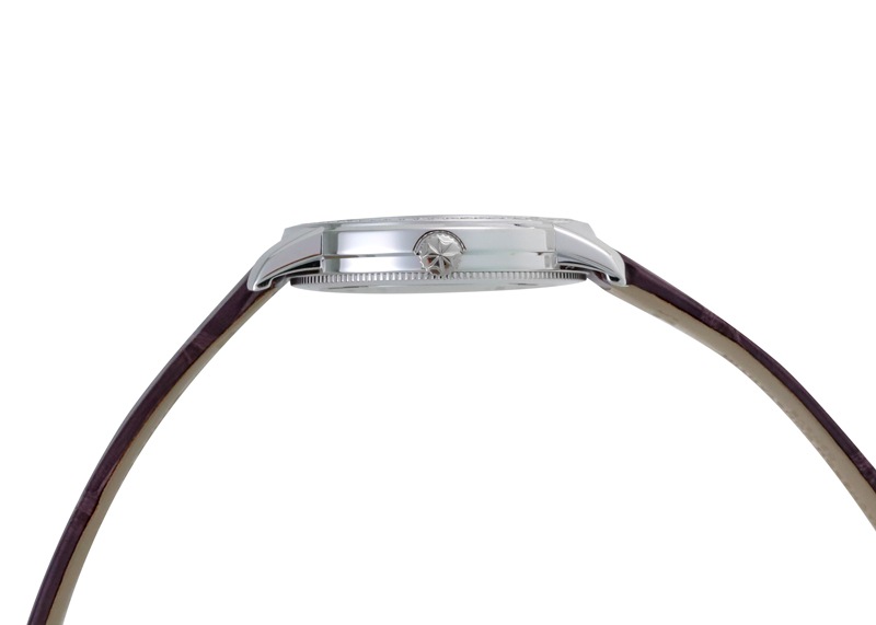 29mmのレディースサイズで、ベゼルにはダイヤモンド、文字盤にはシェルが用いられています。