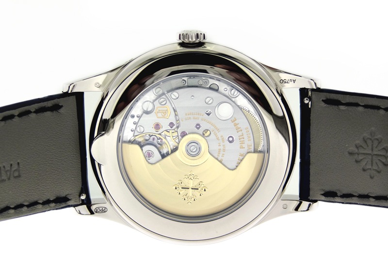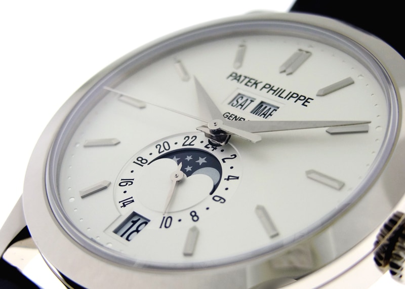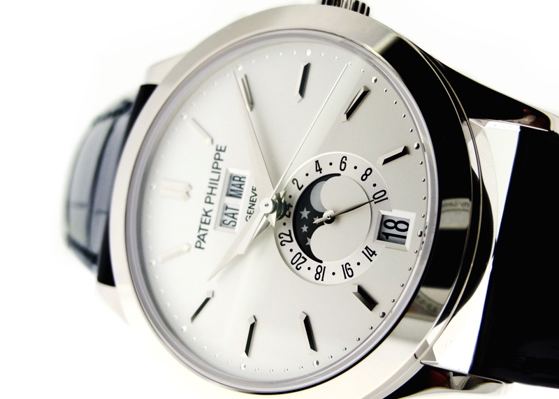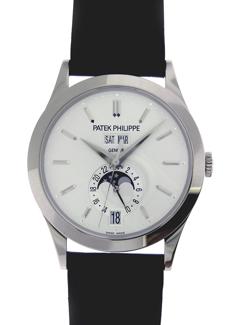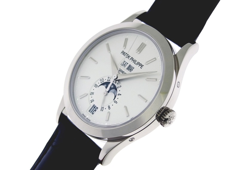 名門パテックフィリップ伝統の複雑機構ともいえるアニュアルカレンダー搭載のモデル「5396G-011」が入荷しました。 パテックフィリップは1996年、初めてアニュアルカレンダーを世にリリース、特許を取得したメーカーです。 その為今まで数多くのアニュアルカレンダー搭載モデルを生み出してきました。「5396」もその一つ。 アニュアルカレンダーとは、自動で大の月小の月の計算・調整を行うカレンダー機構の事で、自ら日付調整が必要なのは2月末から3月1日にかけての年1度だけ。 一般的には文字盤上に並んだ月・曜日などそれぞれを表すいくつものダイヤルから日時を“読み取る”必要があるモデルが多い中、 このモデルではそれぞれを窓で表示、さらにムーンフェイズの周りには24時間表示も搭載され、一目で日時がわかる視認性の高さが特徴です。 前衛機種5396G-001から、文字盤デザインがリニューアルされています。 12時位置のロゴ下に曜日と月表示の窓を並行に置いた「ダブル・ギッシェ」、6時位置に24時間表示を組込んだムーンフェイズとデイト表示という配置はそのままに、 トリプルサークルダイヤルからシンプルなバー型の植字インデックスに。針もドルフィン針へ変更され、よりエレガントになりました。 この複雑機構を実現するのは、パテックフィリップシール認定の自社ムーブメント324 S QA LU 24H/303。 21金で作られたローターやムーブメントの動く様子はシースルーバックからご覧いただけます。 ケース径は38.5㎜で、パワーリザーブは最大48時間です。 商品状態は国内正規品の未使用品。付属品は箱・保証書(2021年6月)がございます。 さらに詳しい内容を確認されたい方は、お気軽にお問い合せ下さい。 ※生産終了モデル