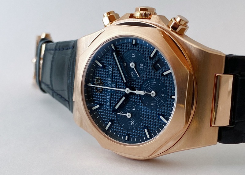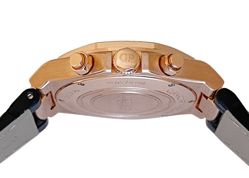 ジラールペルゴの「ロレアート クロノグラフ 」が入荷いたしました。 クォーツショック真っ只中の1970年代、今までにない新しい時計を生みだそうと1975年に ロレアートは製作されました。 オーデマピゲ/ロイヤルオーク(1972年)、パテックフィリップ/ノーチラス(1976年)同様に、ステンレススチール素材で、ケースとブレスレットが一体型が特徴でもある「ラグジュアリースポーツ」にカテゴリーされます。 デザインを手掛けたのはイタリア人建築家「アドルフォ・ナタリーニ」、イタリア・フィレンツェのドゥオモ(教会堂)から着想を得ています。 パーツ製造から手掛けるマニュファクチュールブランドだからこそなし得た一体型クロノグラフ(Cal.GP03300)により、11mm厚/38mmケースとスッキリに仕上がっています。 商品状態は、2022年8月 ジラールペルゴにてオーバーホール済み。 若干の使用感は見られますが、概ね綺麗な状態です。 レザーストラップは腕回りが16cmまでの対応可能。 付属品は箱、メーカー修理明細書がございます。 さらに詳しい内容を確認されたい方はお気軽にお問い合せ下さい。 *参考定価:5,467,000円(税込) 管理用:ii-459
