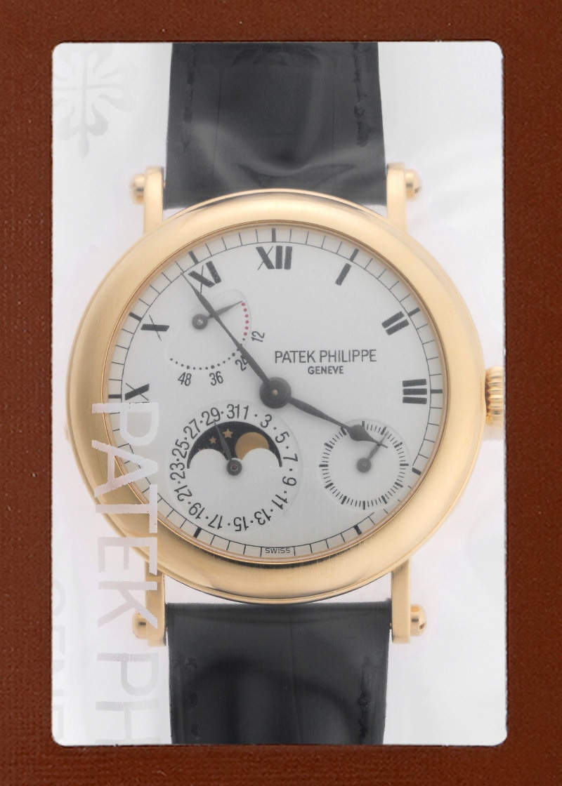 プチコンプリケーション オフィサー「5054J-001」が入荷致しました。 1998年から2005年まで生産されたモデルです。 コンプリケーションモデルに於いてモダンなデザインとして人気を博したモデルです。 アシンメトリーなデザインコードは「3712 ノーチラス プチコンプリケーション」に引き継がれ、「5712 ノーチラス プチコンプリケーション」にも継承されています。 ハンターケースを採用したシースルーバックの裏蓋が特徴的です。開閉式の蓋を開けた際、垣間見ることのできるムーブメントはマイクロローター採用の「Cal.240 PS IRM C LU」を搭載しています。5712プチコン同様に実力は折り紙付きです。 商品状態はパテックフィリップ社で分解掃除(オーバーホール)、研磨作業を含むコンプリートサービス及び、レザーストラップの交換を実施。 最高の状態でお客様へお渡しするため、メンテナンス後は未開封の状態となっております。 新しく生まれ変わった特別な時計を手にできるのはご購入された方のみ。 パテックフィリップ社でメンテナンスをすることで、「他には無い高品質のタイムピース」が出来上がり、初めて手にされる方も安心してお使い頂けます。 世界最高峰ブランドの「メンテナンス後ファーストオーナー」になってみてはいかがでしょうか。 箱、保証書(OPEN)、修理明細書、トラベルケースが付属いたします。 2022年12月より、2年間の修理保証がありますので安心してご利用いただけます。 さらに詳しい内容を確認されたい方は、お気軽にお問い合せ下さい。 ※生産終了モデル 管理用:owl054