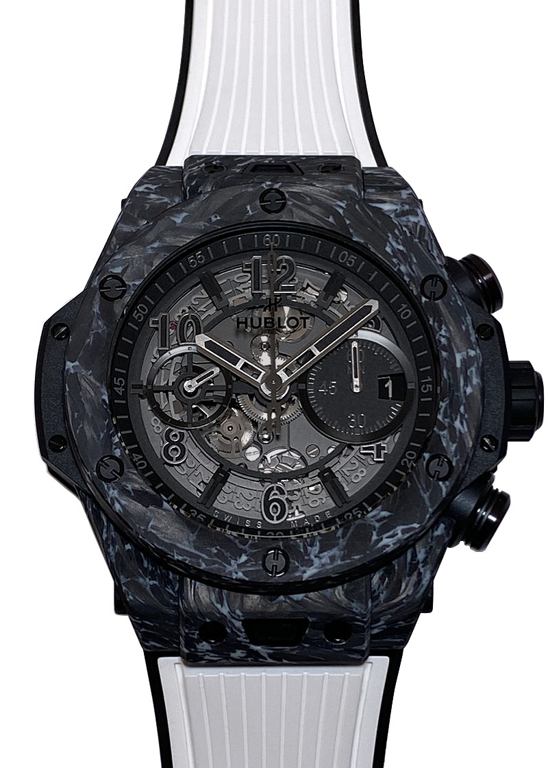 ウブロより「ビッグバン ウニコ カーボン ホワイト 77本日本限定」が入荷しました。 デザインとキャリバーが新しくなった新型ウニコの限定モデルです。 前衛機種で目を惹いた赤の差し色が無くなり、完全なモノトーンとマット加工により シックでスタイリッシュになりました。 マットな質感のカーボンケースは非常に軽く、傷がつきにくいのが特徴。 さらにホワイトが混じるその独特の不規則な模様は一つ一つ出かたが異なる為、唯一無二の1本です。 ホワイトのラバーストラップで軽く爽やかにお使いいただけます。 キャリバーは4年をかけて開発されたウニコ2と呼ばれるCal.HUB1280。 フライバッククロノグラフ機構と表から見えるコラムホイール、72時間のパワーリザーブはそのままに、前型より1.3mmの薄型化に成功。 ケース径が1ミリ小さく44mmとなりました。 もちろんシースルーバックとなっておりキャリバーを表からも裏からも見て楽しむことが出来ます。 商品状態は、2022年発表の新しい個体ということもあり 非常に良い状態です。 ラバーストラップもバックルを留めた痕が僅かに見える程度のとても綺麗な状態です。 付属品は 箱があり、保証書は(E Warranty 2022年5月)です。 さらに詳しい内容を確認されたい方は、お気軽にお問い合せ下さい。 管理用:ii-476