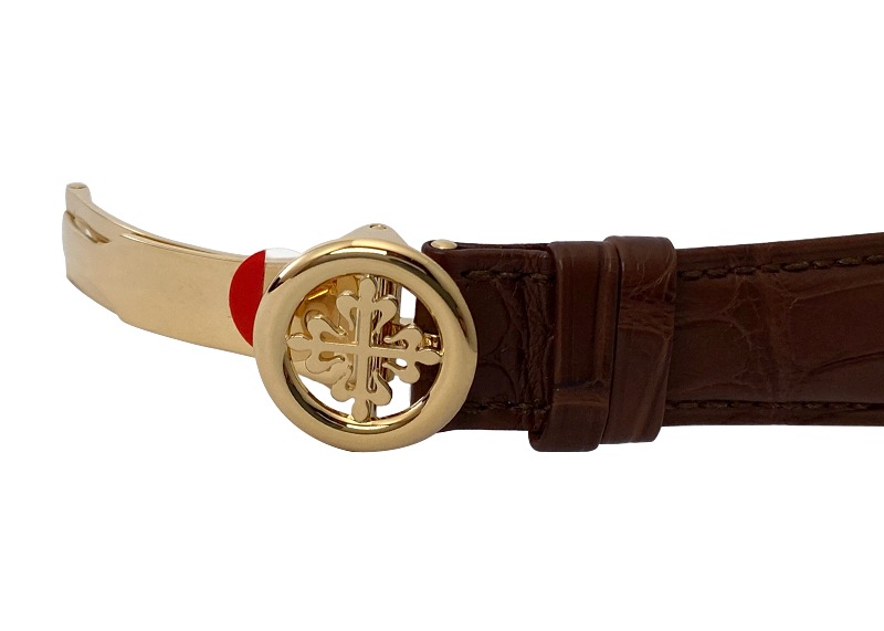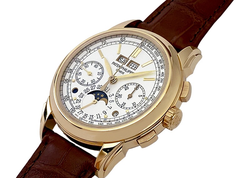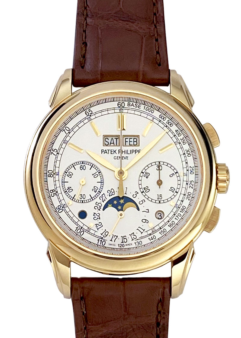 名門パテックフィリップより「5270J-001」が入荷しました。 これまでホワイトゴールド・ローズゴールド・プラチナと展開されてきた”クロノグラフ搭載永久カレンダー”の待望のイエローゴールドモデルです。 まず注目は完全自社製手巻きクロノグラフムーブメントが搭載されていること。 クロノグラフにおいてはこれまでレマニア社製など汎用のクロノグラフムーブメントを搭載していたパテックフィリップですが、2005年ごろから各クロノグラフモデルを自社製に転換しています。 ”永久カレンダー+クロノグラフ”の歴史においては、初代Ref.1518・2499・3970・5970と経て 2011年の5270シリーズで初の完全自社製ムーブメントとなりました。 この複雑機構を搭載していながら厚みは約7mmという奇跡のようなムーブメント“CH 29-535 PS Q”は装飾も見事。シースルーバックから堪能できます。 次になんといってもイエローゴールドであることがポイント。 パテックフィリップの、特に永久カレンダーを含むグランドコンプリケーションといえば 王道はイエローゴールドという歴史があります。 しかし5270においては、2011年のリリースから約9年を経ての待望のイエローゴールドの発表でした。 長年のパテックフリップ愛好家にとって 非常に意味のある、待ちわびたカラーであったはずです。 アプライドインデックスや各窓の縁など随所にゴールドが使われ、文字盤はゴールドが映える シルバーオパーリン文字盤。 曜日・月・閏年サイクル・昼夜を窓表示し、日付・ムーンフェイズ・スモールセコンド・クロノグラフの積算計がインダイヤルの仕様。 他の針と混同しないようクロノグラフ針はサンドブラスト(マットに見える)加工を施しているなど、見れば見るほどこだわりと技術の高さが伝わります。 2020年保証書、手付かずの未使用品です。もちろん裏蓋を含め付属品は完品。 ぜひそのすばらしさをお手元でご覧ください。 管理用:ii-506