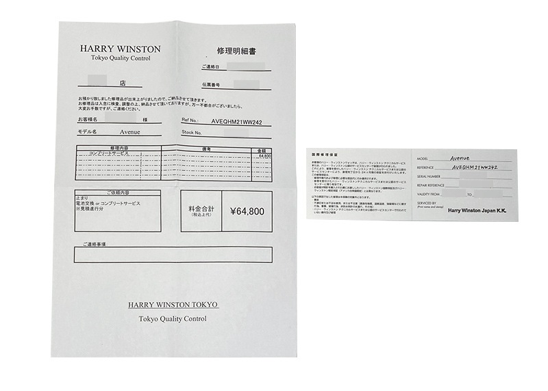 - 付属品 修理明細書