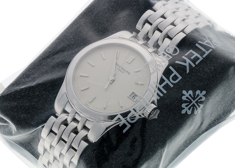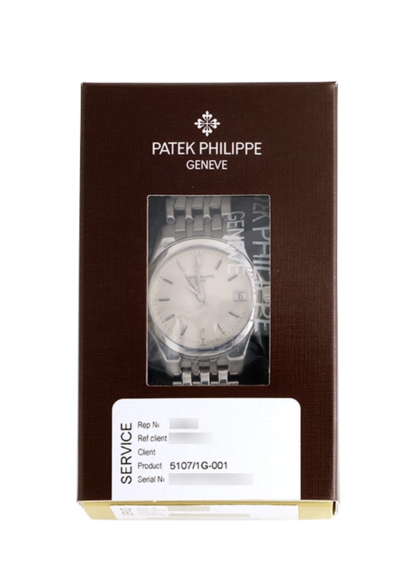 名門マニュファクチュールのパテックフィリップより、「カラトラバ 5107/1G」が入荷しました。 パテック フィリップのスタイルを象徴する最も美しいモデルであり、ラウンド型時計の古典として その完璧な造形美により多くの時計好きを魅了するカラトラバ。 今回入荷した5107は、2005年に生産終了になっているモデルで、少し他とは違う特徴を備えています。 その一番の特徴は、スポーツモデルの要素と捉えられていた“ねじ込み式リュウズ”と“リュウズガード”を備えていること。 大きさも37mmと2000年発表当時の主流よりかなり大き目で、ドレスウォッチにスポーツモデルの要素を取入れた斬新なデザインでした。 カラトラバの定番だったスモールセコンドではなくセンターの3針モデルでデイト付きなのもポイントです。 スモールセコンド・手巻きカラトラバのワンランク上モデルとして、自動巻Cal.315SCを搭載し、ケースもシースルーバックを採用。 パワーリザーブは約48時間、丹念に作り込まれ装飾が施されたムーブメントの動きを堪能できるのはオーナーの特権です。 カラトラバらしい完成されたラウンドフォルムを持ち、後継にあたる5127よりベゼルがフラットで少しシャープな雰囲気をもちます。 シンプルな文字盤に映える アプライドインデックスとデイト表示は視認性が高く、センターセコンドという点も実用的な要素。 ドレスウォッチの気品を備えつつ、フォーマルな場でもビジネスの場においても実力を発揮する時計です。 比較的生産数が少ないことや、現行品には無い形状で人気が高まっている5107。ぜひ実物をご覧ください。 提携工房にて外観の傷取り(研磨)、パテックフィリップジャパンにてオーバーホール、表クリスタル交換を行っております。 腕周りは約18.5センチまで対応いたします。 パテックフィリップの修理明細書(2023年8月)、トラベルケースが付属します。 メンテナンス後どなたの手にも触れていない真空パック状態でのお渡しです。 ぜひ自らの手で開封するところからお楽しみください。 さらに詳しい内容を確認されたい方は、お気軽にお問い合せ下さい。 管理用:owm117